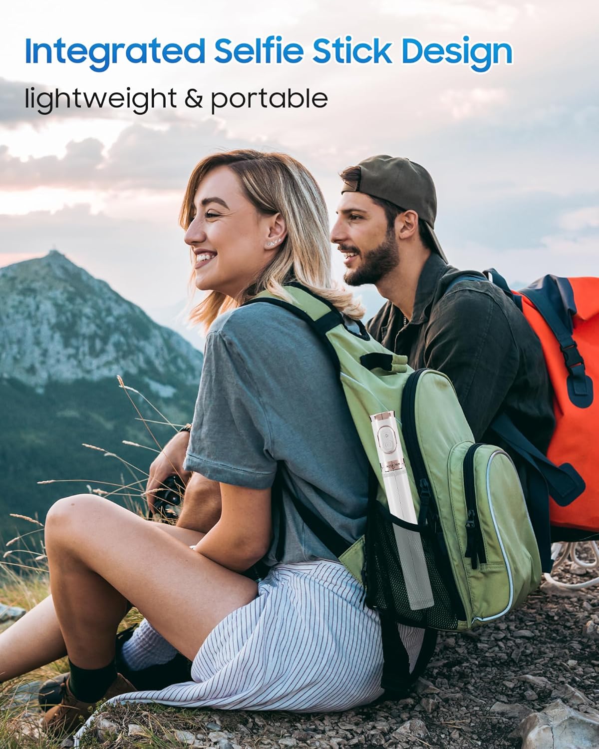 All-in-one Phone Tripod: Combines a tripod, selfie stick, and cell phone stand in one sleek design. Perfect for content creators, travelers, and live streaming. Folded to 12.8 inches, it’s portable and can easily fit into a backpack