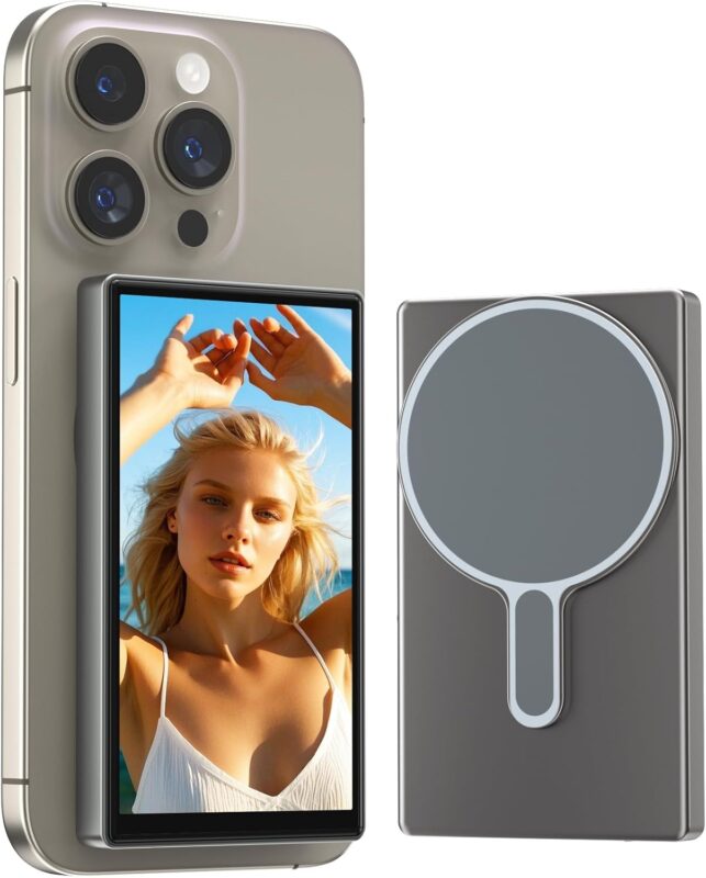 Phone Vlog Selfie Monitor Screen with Remote, Magnetic Back Camera Monitor for iPhone Android, Wireless External Selfie Mirror Screen for Vlog Live Stream TikTok