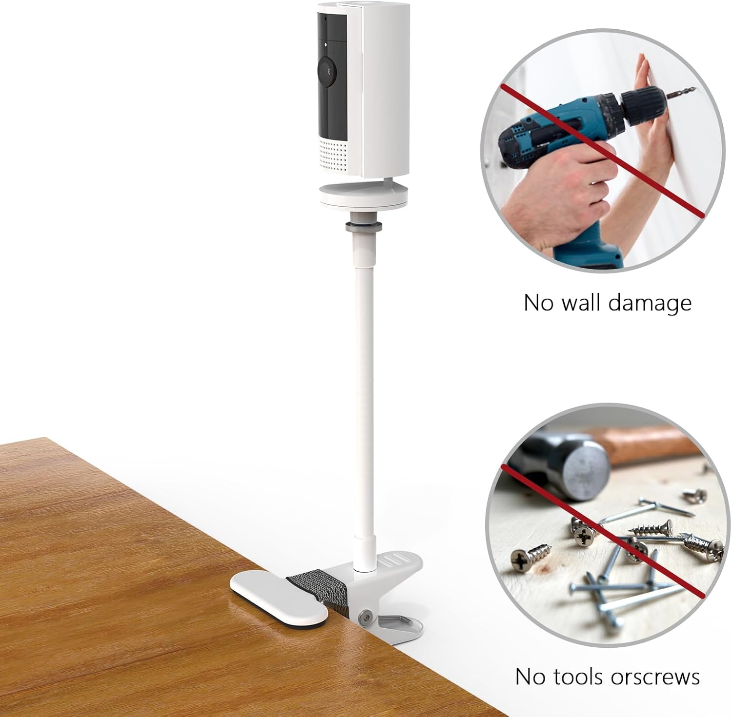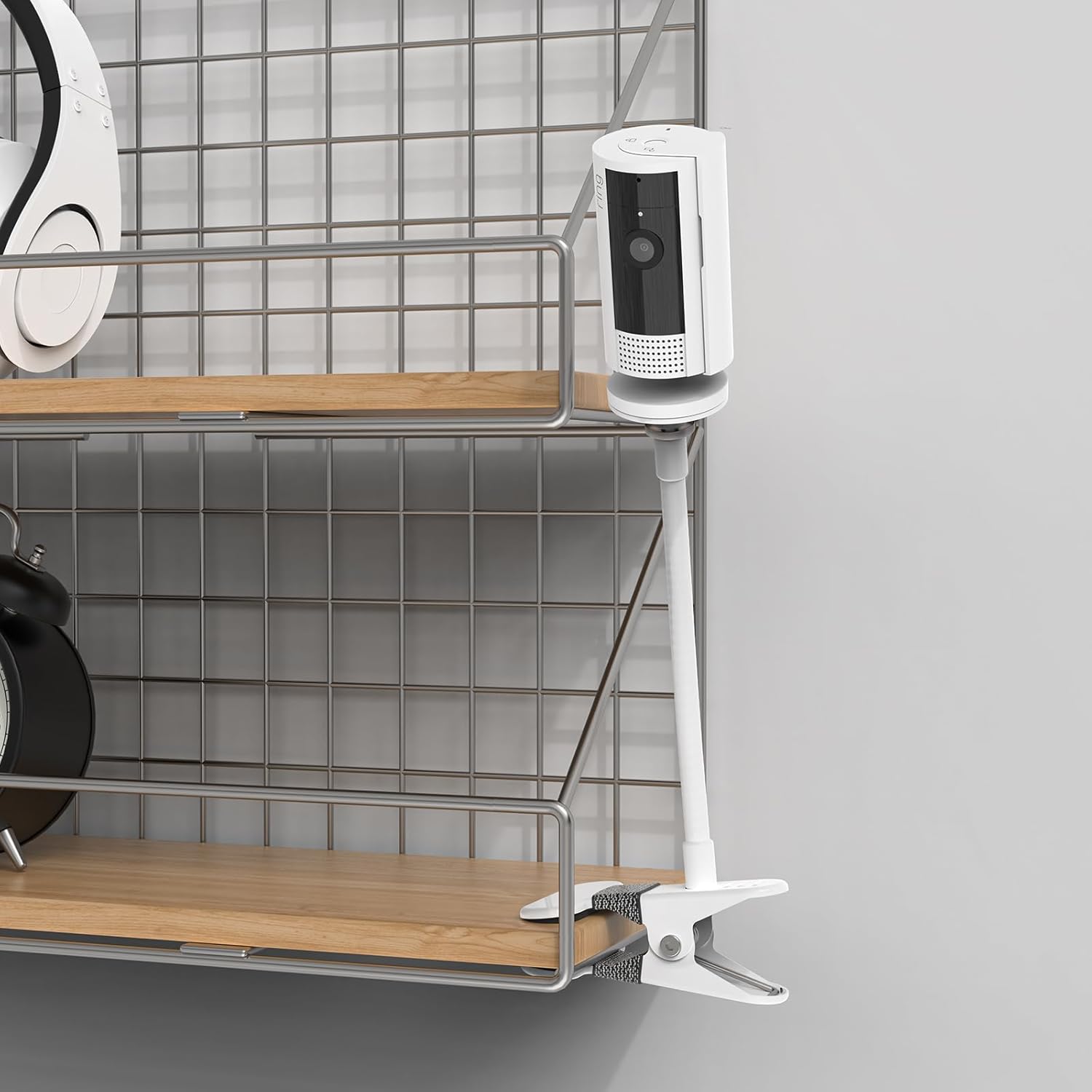 HOLACA Clip Mount for Ring Indoor Camera(2nd Gen)/Pan-Tilt Indoor Cam Stand Bracket with 1/4 Threaded Hole Holder for Crib Nursery Pillars (White)
