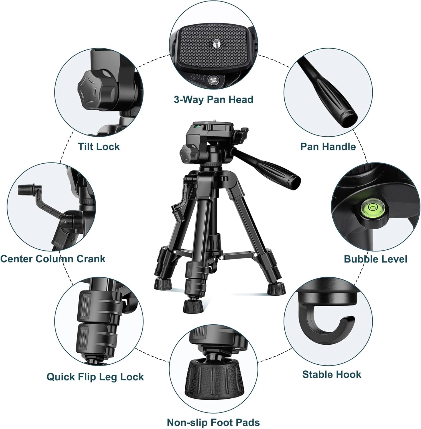 【Adjustable Travel Tripod】Upgraded quick flip locks tripod adjusted freely from 11.8″ to 25″ in a few seconds to meet different height requirements for variety of shooting environments and photography needs. Mini tripod folds down to only 12 inches, weighs 1.3 lbs. Lightweight tripod and easy to carry when traveling.