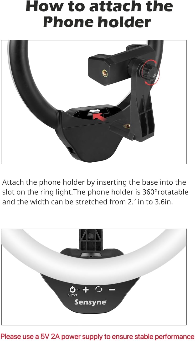 【Versatile Accessories】 The USB-powered control helps protect your safety while improving the ring light’s brightness. The phone holder is spring-loaded and extends up to 5.3″ wide, it is compatible with almost ALL smartphones with or without a case.
